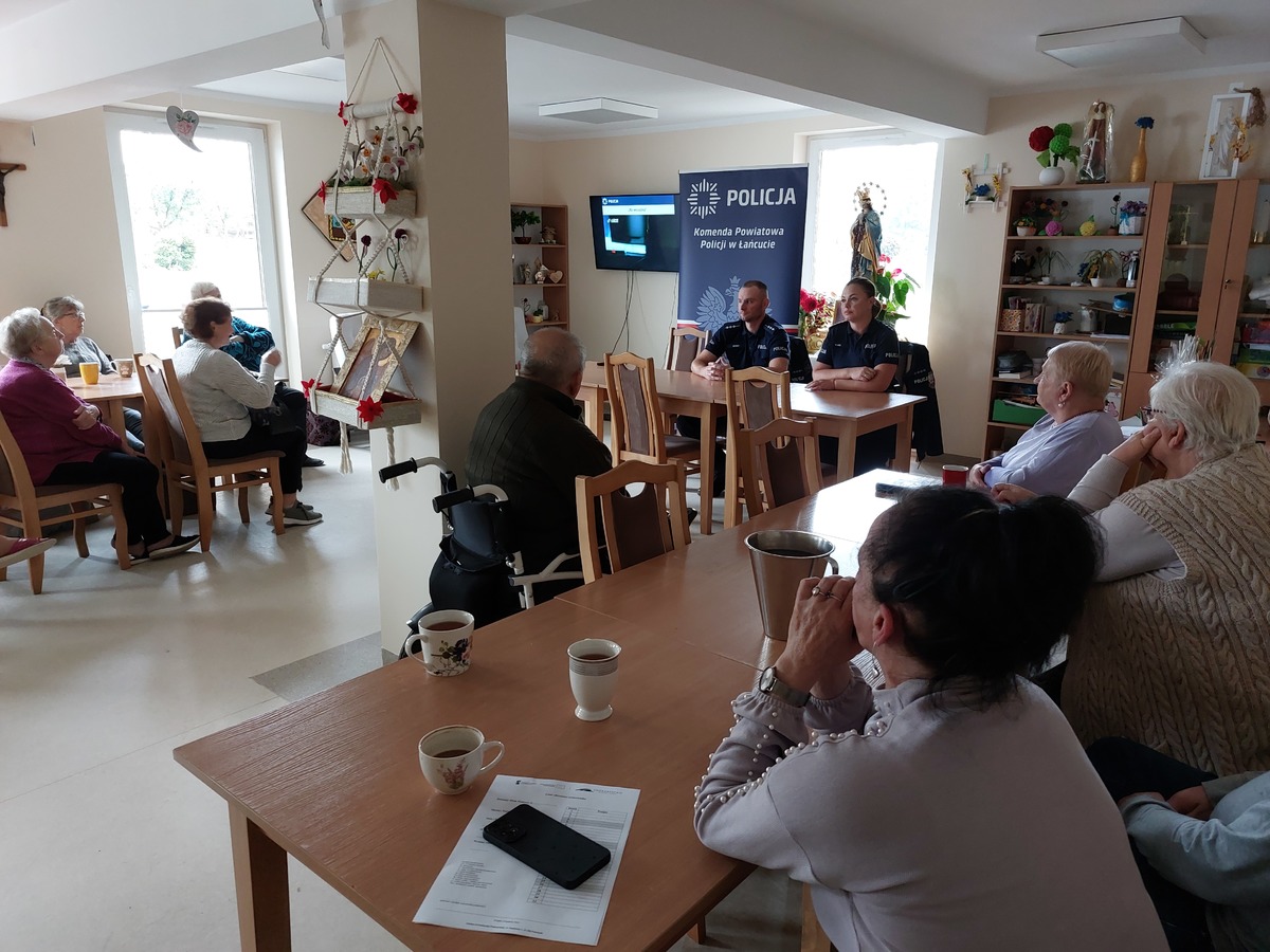 Prelekcje poprowadzili asp. sz. Magdalena Miś oraz st. asp. Sławomir Ruszel - funkcjonariusze rewiru dzielnicowych łańcuckiej komendy. Na podstawie multimedialnej prezentacji i wyświetlanych filmów omówili metody działania przestępców stosowane wobec osób starszych, w tym oszustwa „na wnuczka” i „na policjanta”.