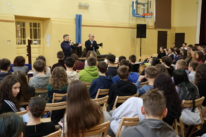 Interaktywne spotkanie, we współpracy z łańcucką jednostką, zorganizował i poprowadził Mariusz Duliban - nauczyciel II liceum. O policyjnej służbie opowiadali uczniom nadkom. Dominika Kopeć oraz podkom. Kamil Kłeczek – funkcjonariusze z Sekcji Doboru Wydziału Kadr i Szkolenia Komendy Wojewódzkiej Policji w Rzeszowie. Łańcucką komendę reprezentował natomiast kom. Wojciech Gruca – oficer prasowy Komendanta Powiatowego Policji w Łańcucie.