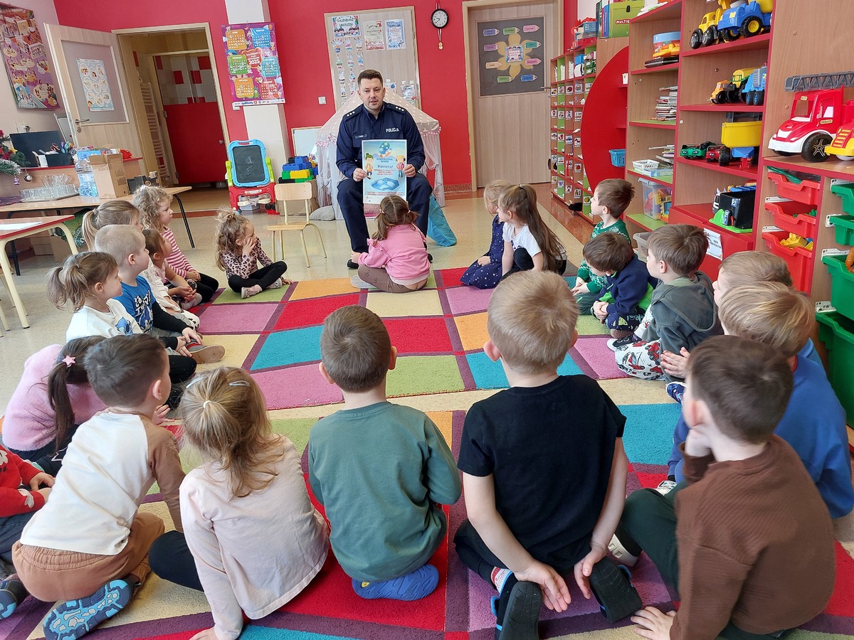 Spotkania z policjantami były nie tylko okazją do rozmów o bezpieczeństwie, dzieci z zaciekawieniem słuchały o policyjnej służbie i zadawały wiele pytań. Młodzi uczestnicy chętnie przymierzali elementy policyjnego umundurowania i pozowali do pamiątkowych zdjęć. Wizyta policjantów była dla niech wielkim przeżyciem.