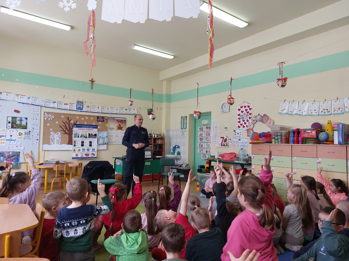 Dzieciom przypomniano podstawowe zasad bezpiecznego zachowania się na drodze oraz podczas zabawy na śniegu i lodzie. Funkcjonariusze omówili również zasady postępowania w sytuacji kontaktu z osobami obcymi, a także w przypadku ataku psa.
