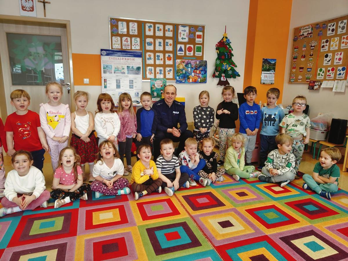 Wczoraj, w ramach działań edukacyjno-informacyjnych, łańcuccy policjanci odwiedzili dzieci w Publicznym Przedszkolu w Białobrzegach. Spotkania z przedszkolakami były dobrą okazją do rozmów na temat szeroko rozumianego bezpieczeństwa podczas zbliżających się zimowych ferii.