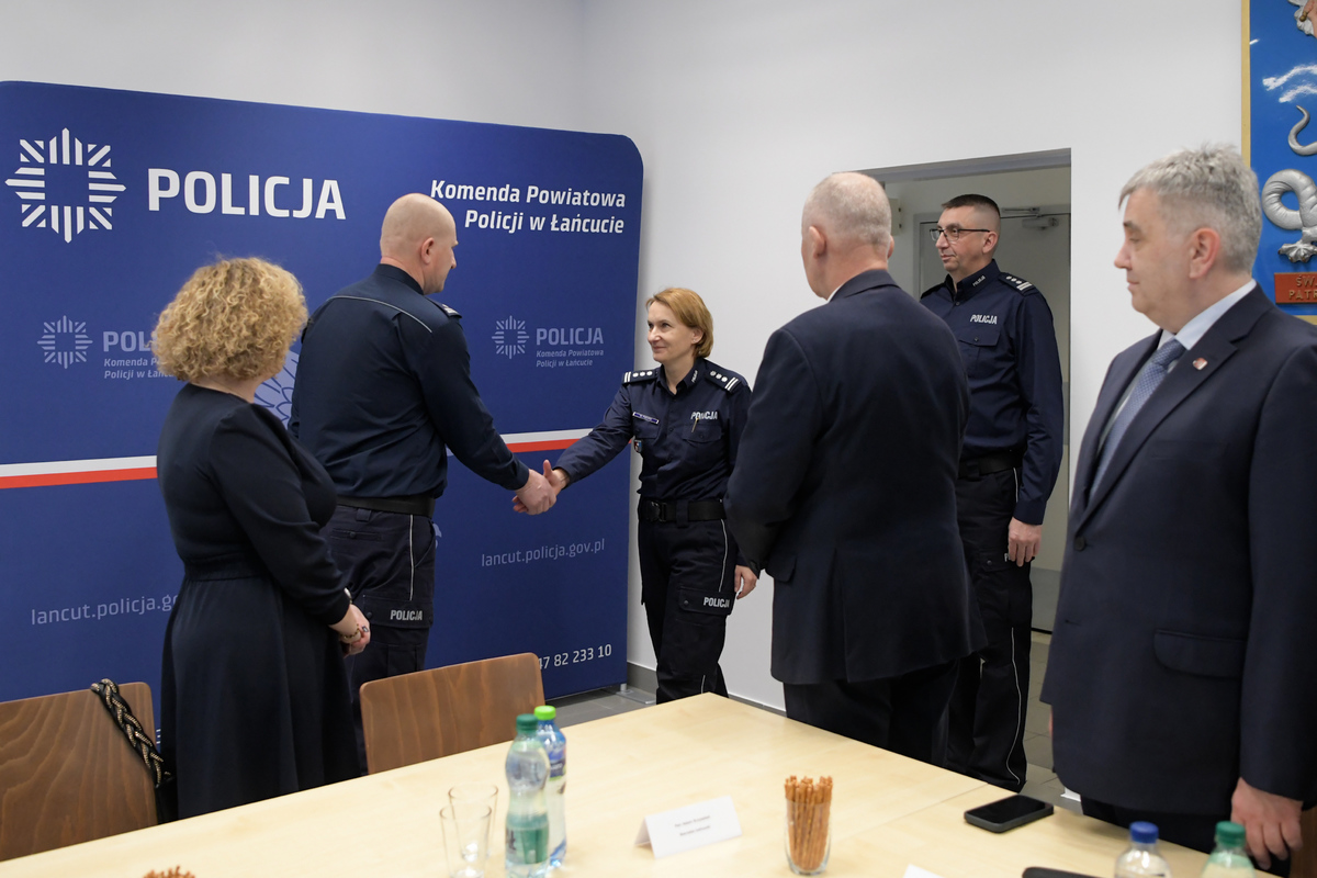 W Komendzie Powiatowej Policji w Łańcucie odbyła się odprawa roczna podsumowująca pracę policjantów w 2025 roku. W wydarzeniu uczestniczyła I Zastępca Komendanta Wojewódzkiego Policji w Rzeszowie insp. Małgorzata Fąfara oraz przedstawiciele samorządu i wymiaru sprawiedliwości, a także kierownictwo łańcuckiej komendy.