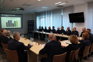 Wczoraj, w sali konferencyjnej Komendy Powiatowej Policji w Łańcucie odbyła się odprawa służbowa łańcuckich policjantów. W wydarzeniu udział wzięła I Zastępca Komendanta Wojewódzkiego Policji insp. Małgorzata Fąfara, a także zaproszeni goście: Starosta Łańcucki Adam Krzysztoń, Zastępca Burmistrza Miasta Łańcuta Marcin Kowalczyk, Wójt Gminy Białobrzegi Franciszek Masłoń, Wójt Gminy Czarna Józef Buk, Wójt Gminy Łańcut Tadeusz Pasieczny, Wójt Gminy Markowa Aleksander Cwynar, Wójt Gminy Rakszawa Janusz Krupczak, Wójt Gminy Żołynia Piotr Dudek, Prokurator Rejonowy w Łańcucie Aleksandra Przybyło, Komendant Powiatowy Państwowej Straży Pożarnej w Łańcucie st. bryg. Bogusław Golenia oraz kadra kierownicza i przedstawiciele związków zawodowych Komendy Powiatowej Policji w Łańcucie.